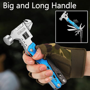 Be ready for anything with this Multifunctional Hammer Pliers Multitool, a compact yet powerful survival essential for camping, hiking, travel, or even daily home use. Crafted from stainless steel with titanium plating, it resists rust, delivers long-lasting durability, and ensures high hardness for tough jobs.